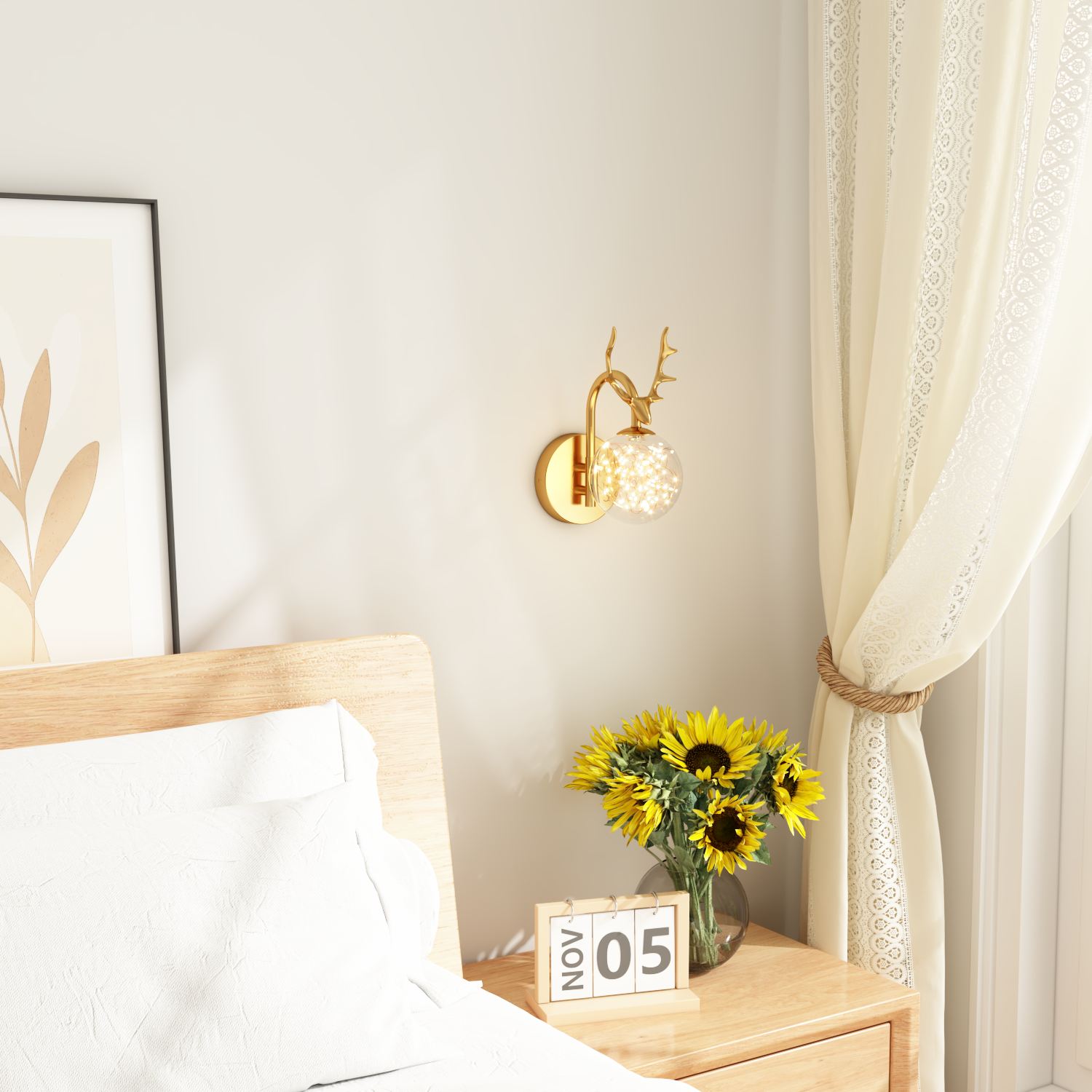 Beatihome Brushed Brass Wall Sconces with Milky White Glass Shades