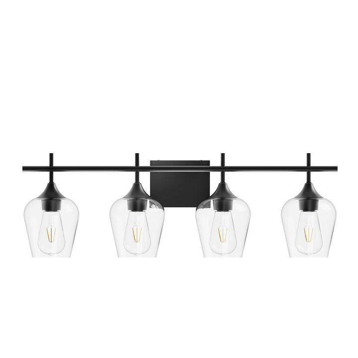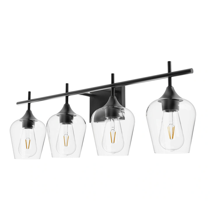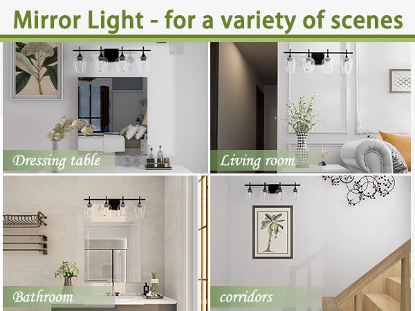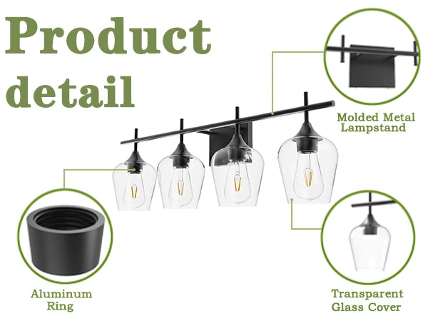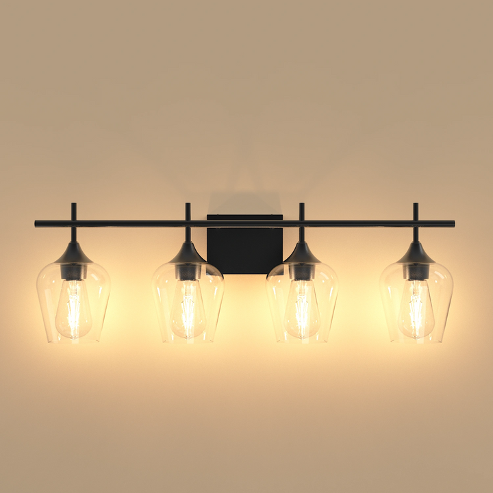 Modern 4-light vanity light fixture features in Matte black finish with clear glass shade,perfect suitable for bathroom bedroom Hallway dressing room vanity table ect.
