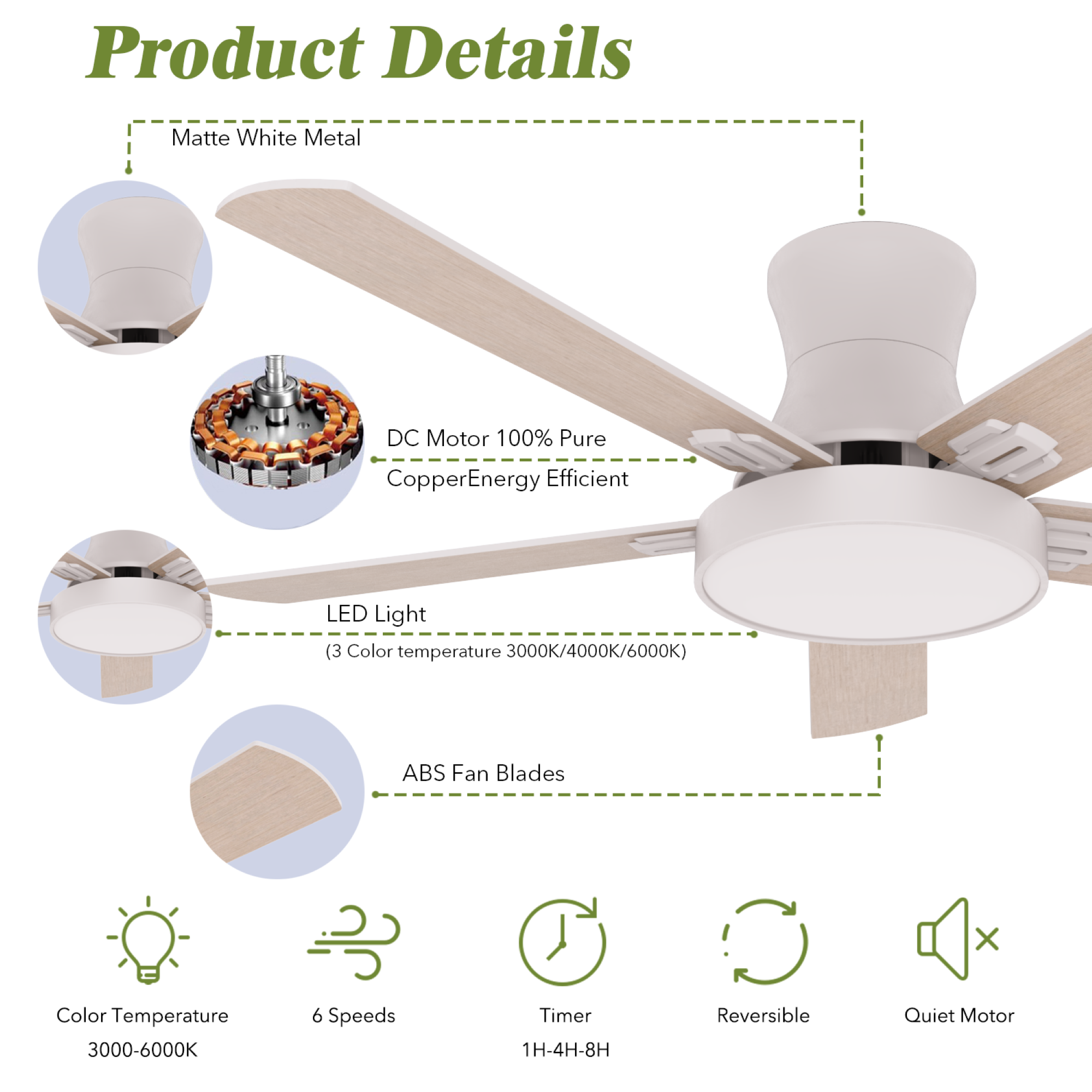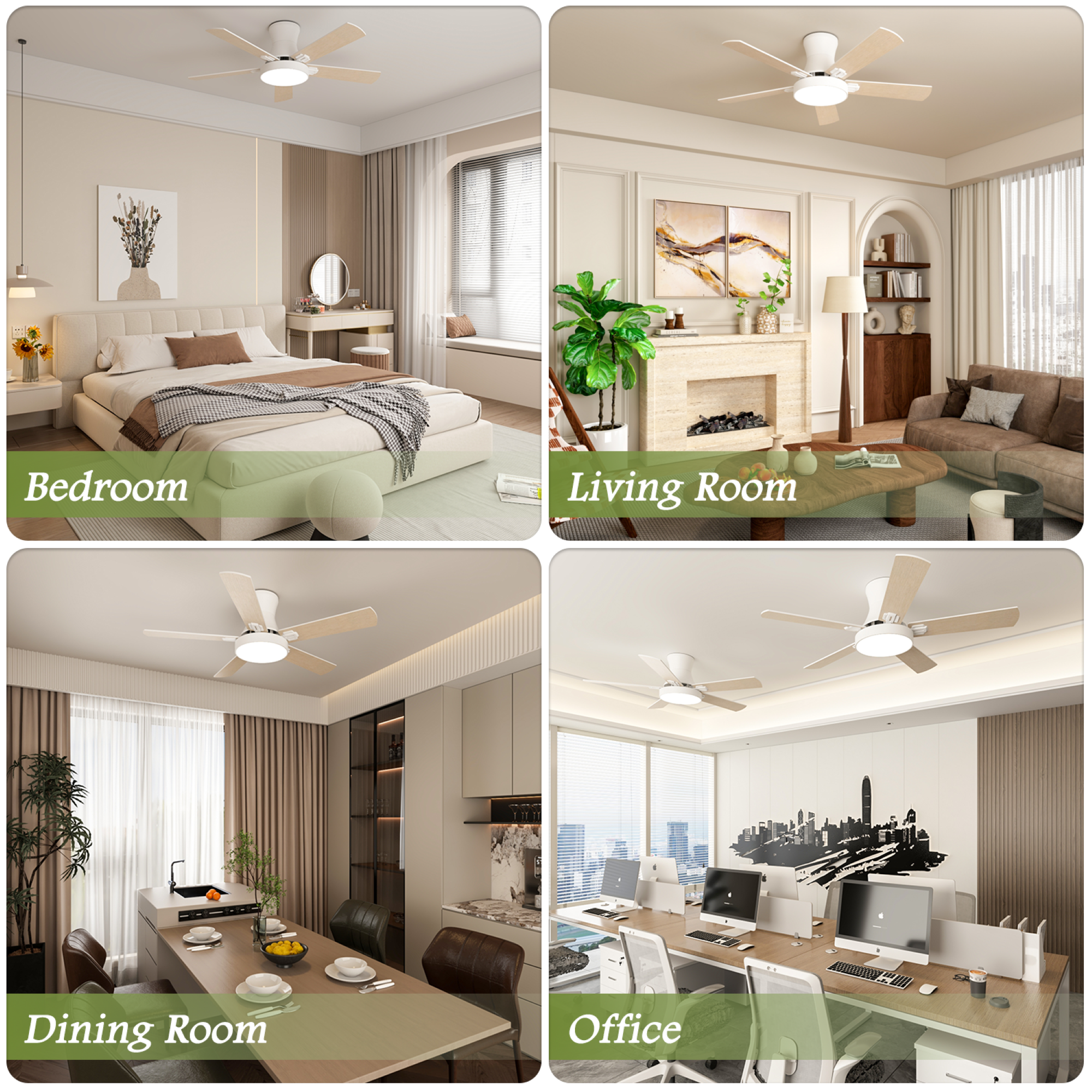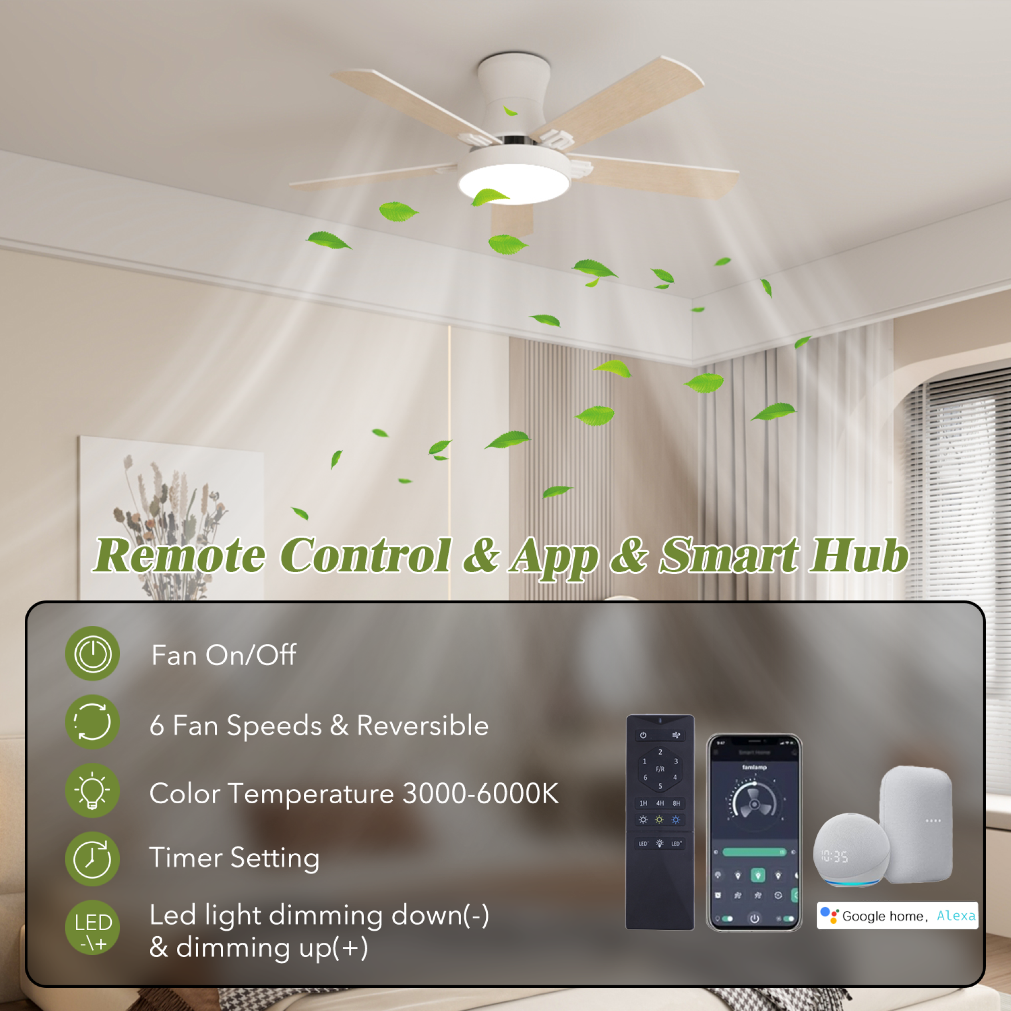 42 inch Low Profile Ceiling Fan with Light and Remote/App/Alex, Flush Mount, Quite 6 Speeds Reversible DC Motor, Modern Low Profile Ceiling Fan for Living Room,Bedroom