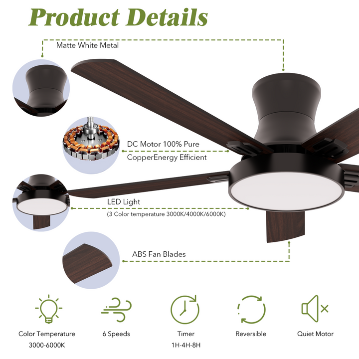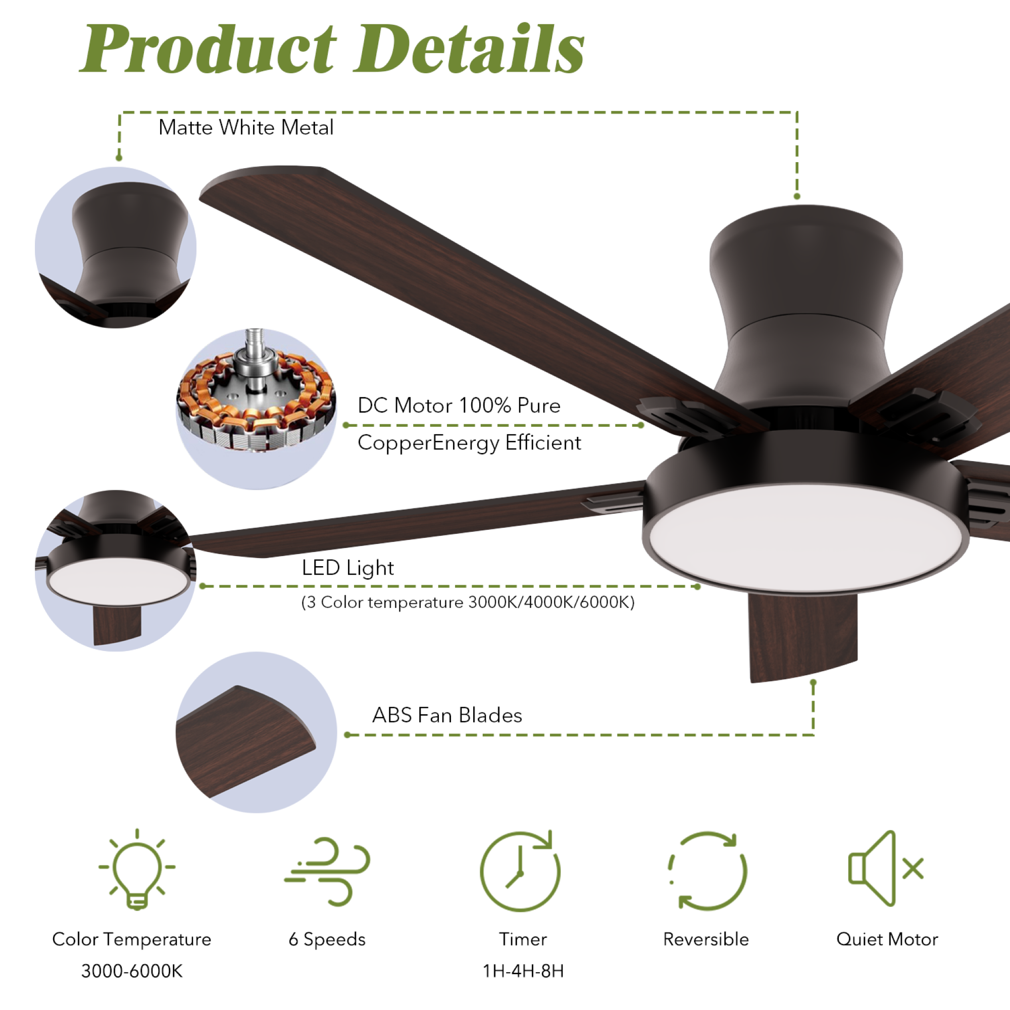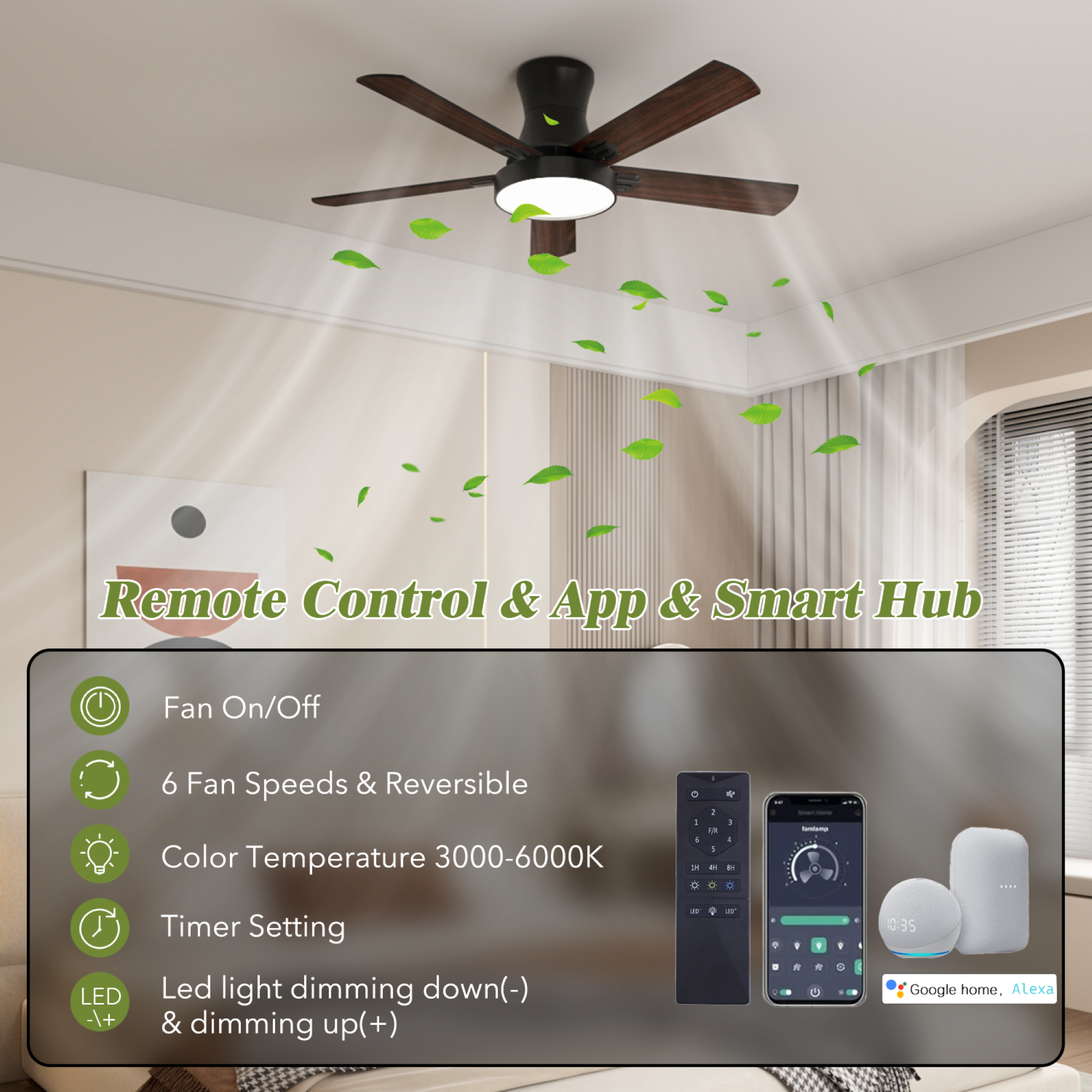 42 inch Low Profile Ceiling Fan with Light and Remote/App/Alex, Flush Mount, Quite 6 Speeds Reversible DC Motor, Modern Low Profile Ceiling Fan for Living Room,Bedroom