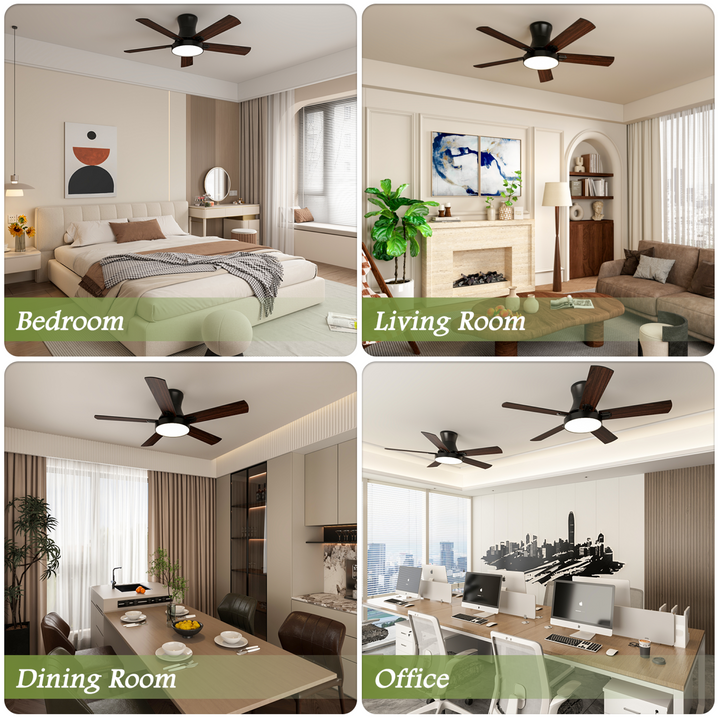 This Wood grain 5 blades ceiling fan combines functionality with style. The blades are crafted from unique, eco-friendly, and high - quality ABS plastic, adding a touch of warmth and authenticity. The matte metal bracket not only enhances the fan's durability but also contributes to its modern and stylish appearance. It is the perfect addition to any indoor space, including farmhouse - style rooms, best fans for bedrooms, offices, living rooms, dining rooms, hallways, and even covered patios.
