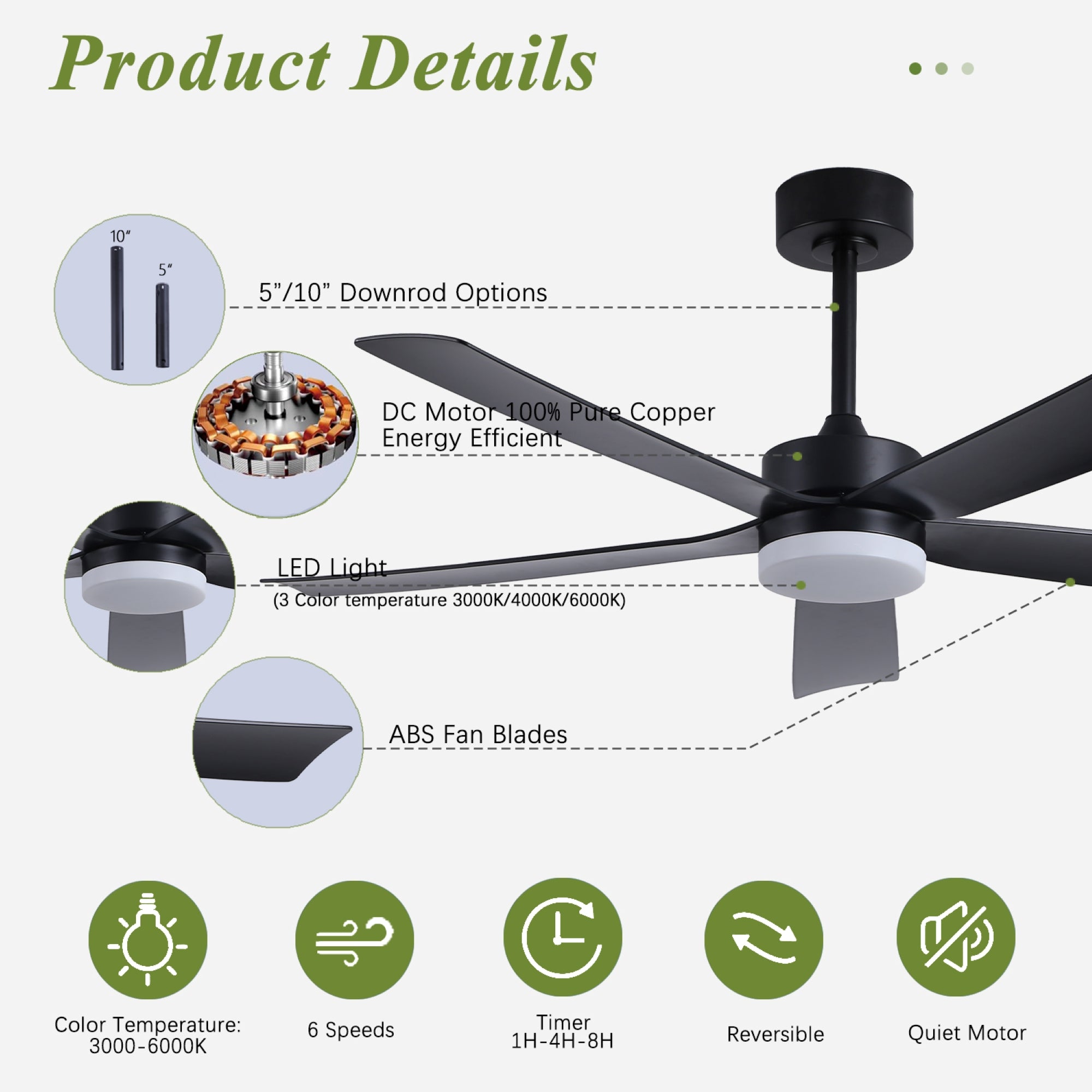 This outdoor ceiling fans for patios comes with a 20W dimmable LED light,with DC 37.5W Motor offering a more energy-efficient. The modern ceiling fan features 215-323 sqft,Max CFM is 5820,suitable fan for bedroom and outdoor ceiling light,ideal for patios, breezeways, gazebos, pergolas, and other covered outdoor areas.