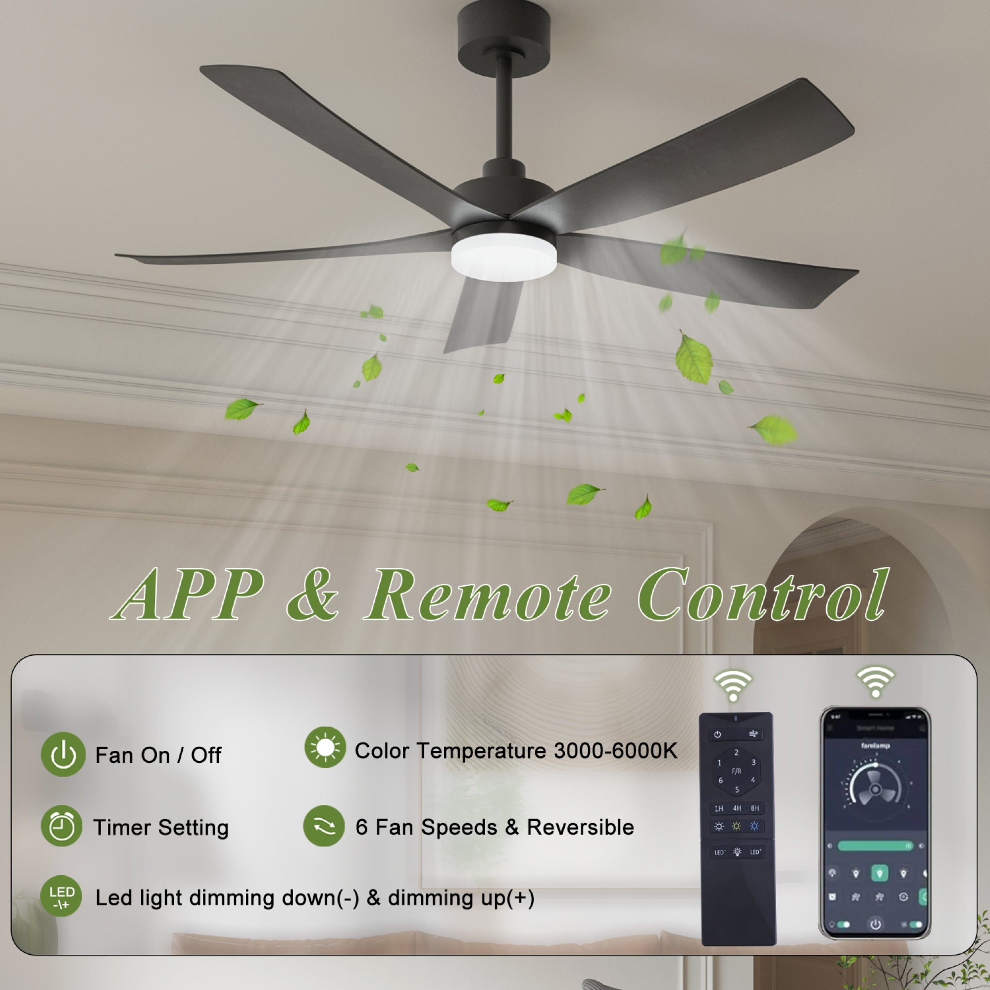 52" Ceiling Fans with Lights,Low Profile Indoor Ceiling Fan with Light and Remote/Tuya APP Control/Alexa/Google,LED Dimmable Ultra Quiet DC Reversible Led Ceiling Fan for Bedroom Living