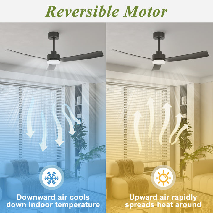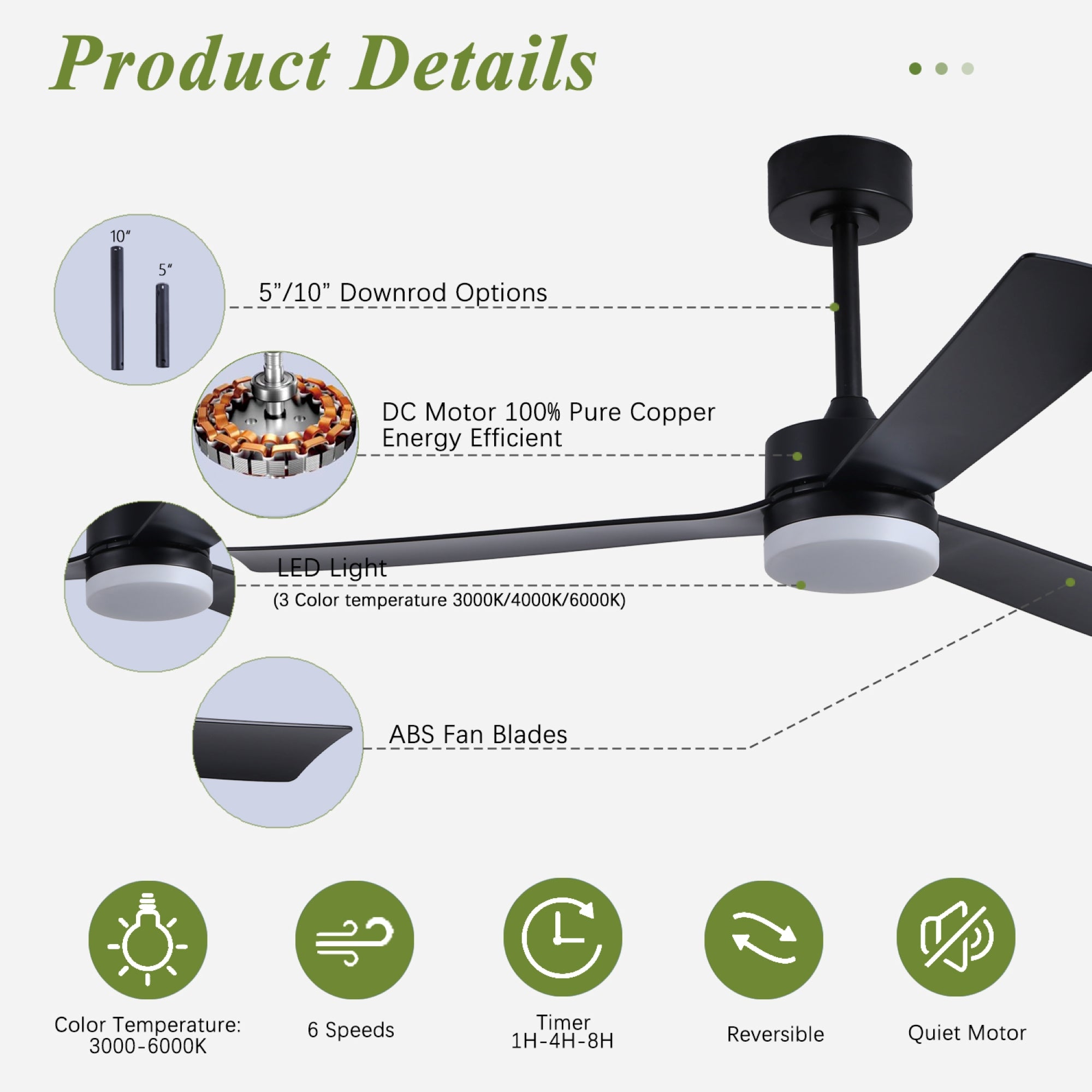 Featuring a sleek modern design in a pristine black finish, this ceiling fan adds a touch of elegance to any room, whether it's your living room, master bedroom, or patio. Its 52-inch size makes it suitable for medium to large spaces, ensuring optimal airflow and comfort.