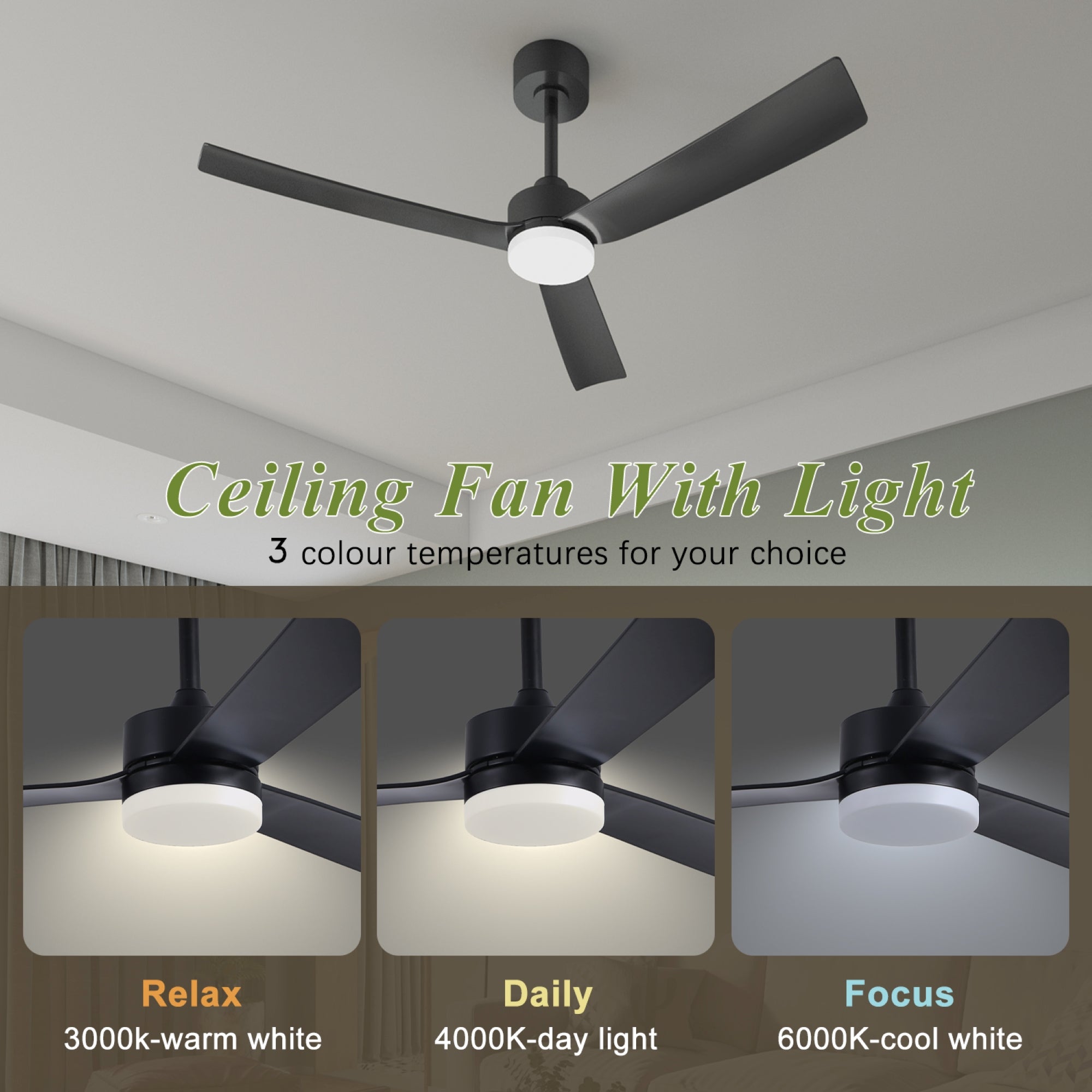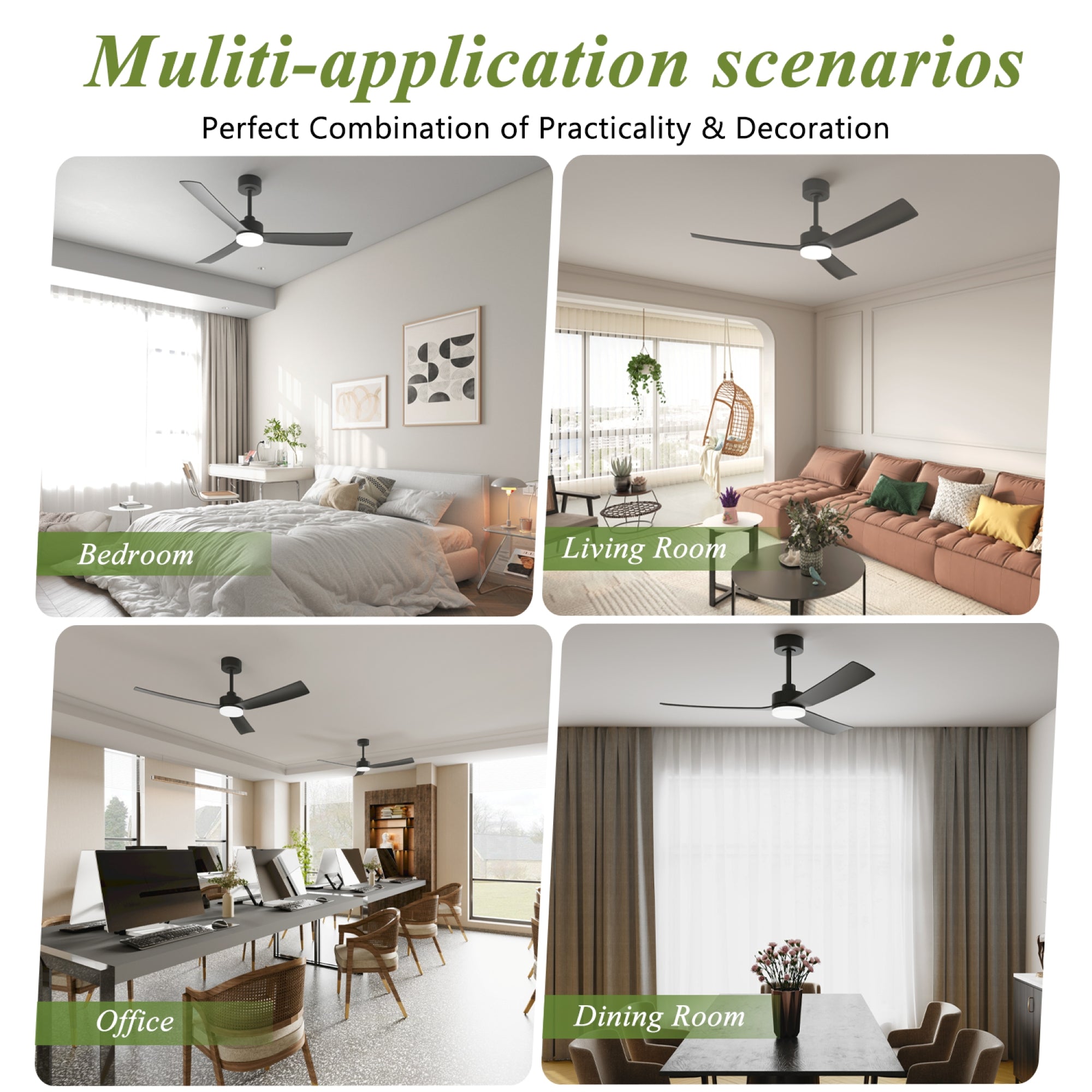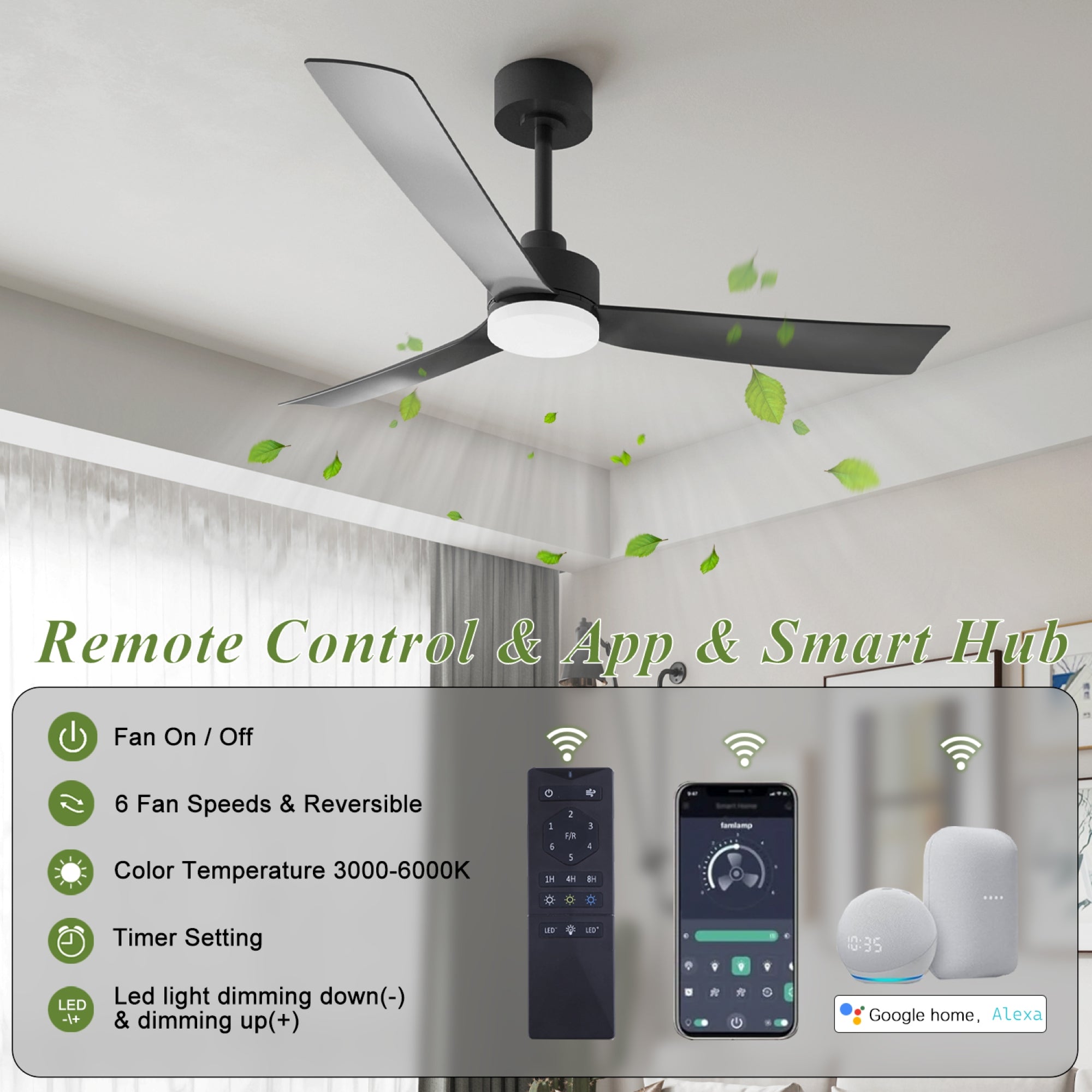 52 Inch LED Morden Black Ceiling Fan with Remote/App/Voice Control Quite DC 6 Speeds Motor