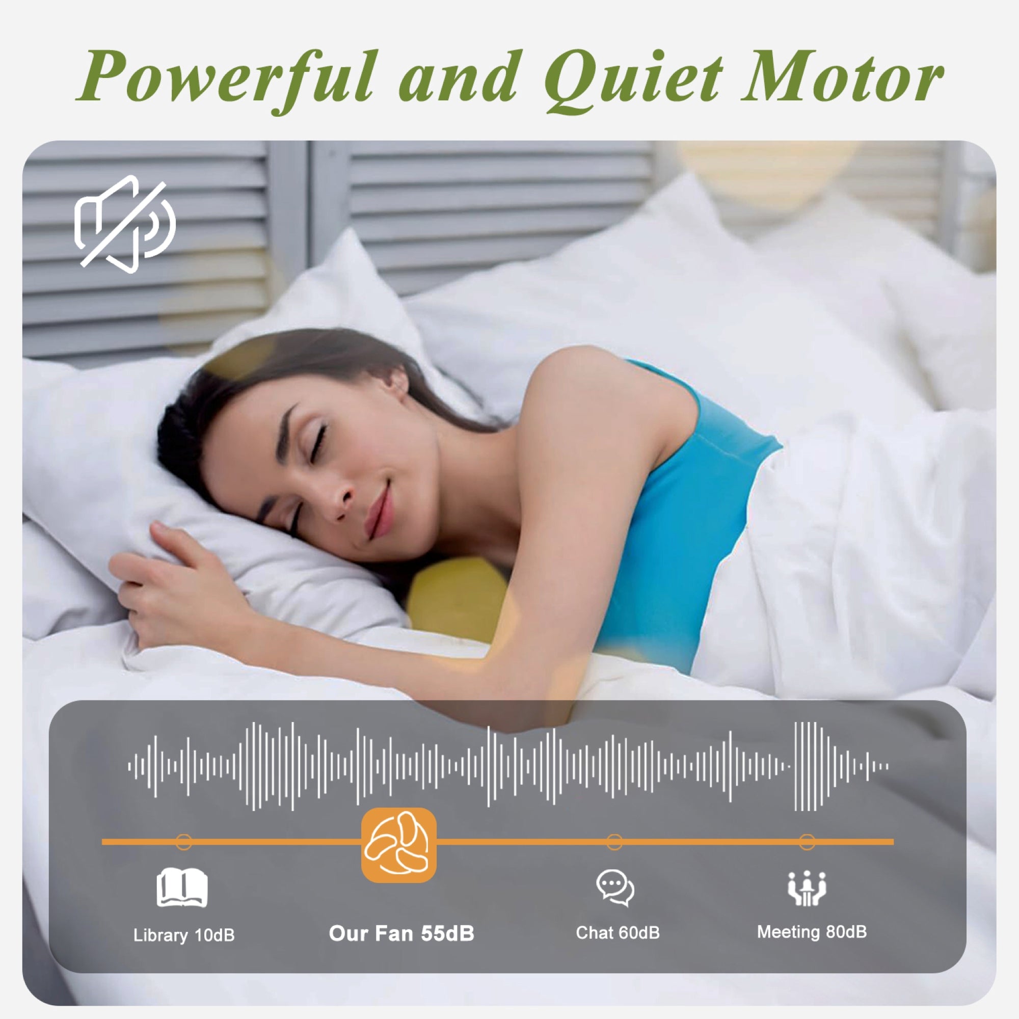 Experience tranquility with the ultra-quiet DC motor, ensuring peaceful operation while you relax, work, or sleep. Say goodbye to noisy interruptions and enjoy a serene environment.