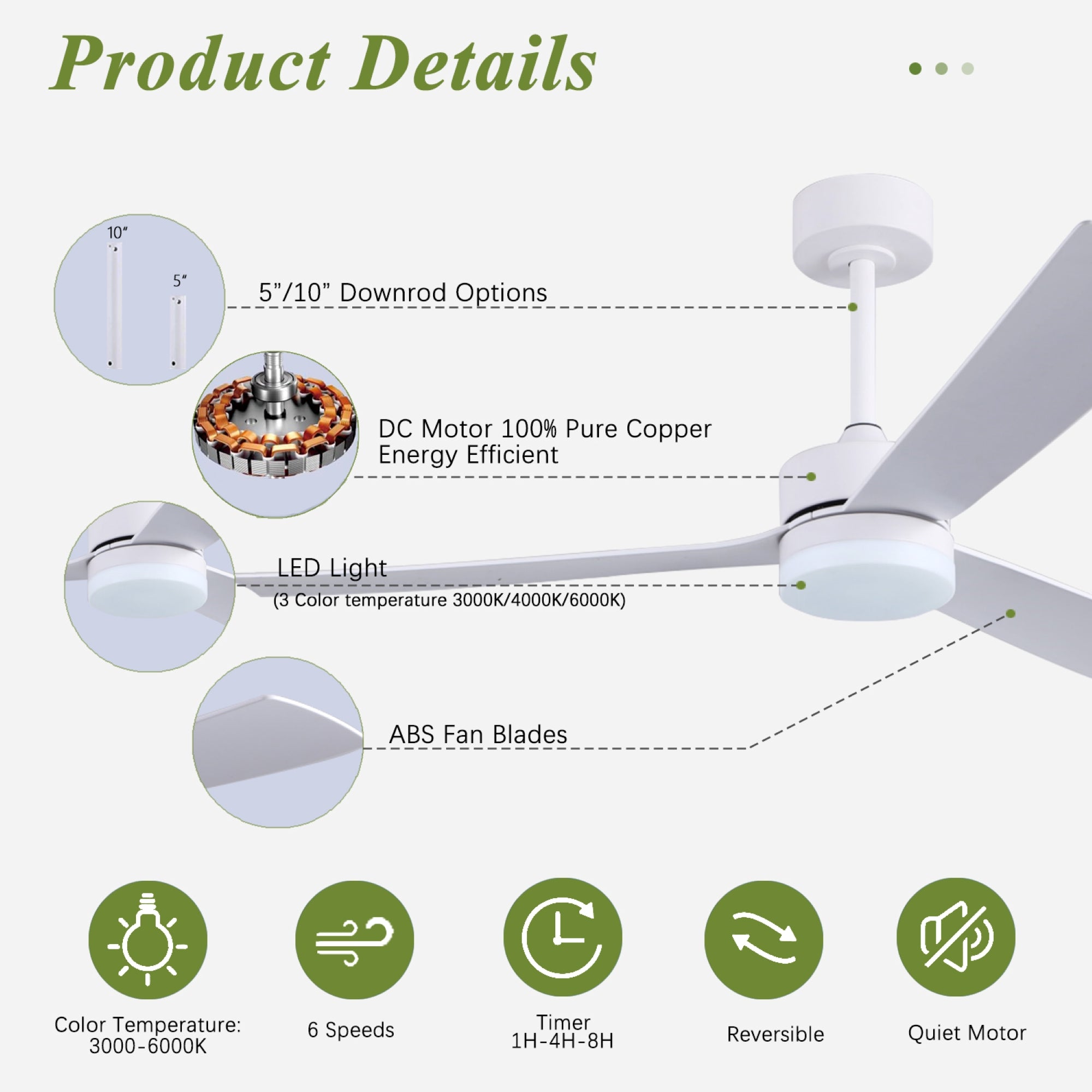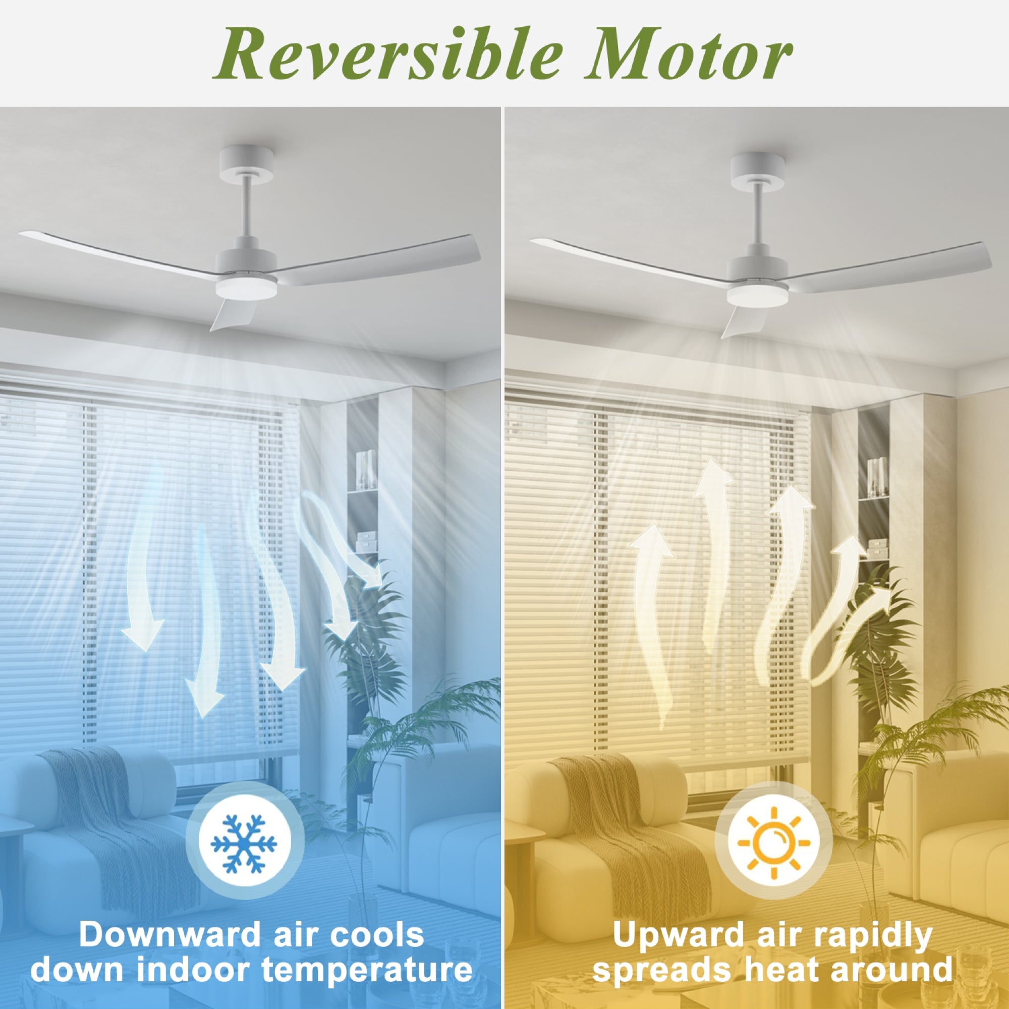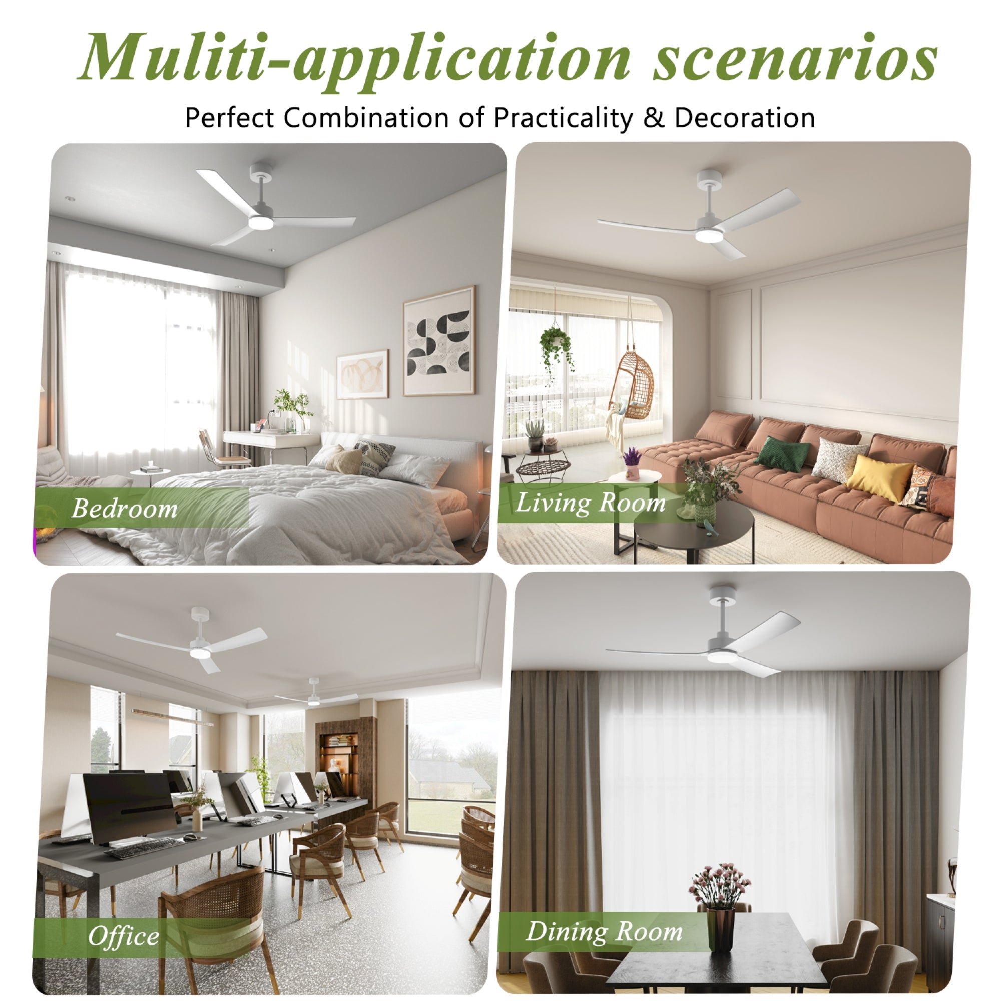Elevate your living space with the this LED Modern White Ceiling Fan. This sophisticated addition to your home decor combines functionality with style, delivering efficient cooling and customizable lighting options.Featuring a sleek modern design in a pristine white finish, this ceiling fan adds a touch of elegance to any room, whether it's your living room, master bedroom, or patio. Its 52-inch size makes it suitable for medium to large spaces, ensuring optimal airflow and comfort.