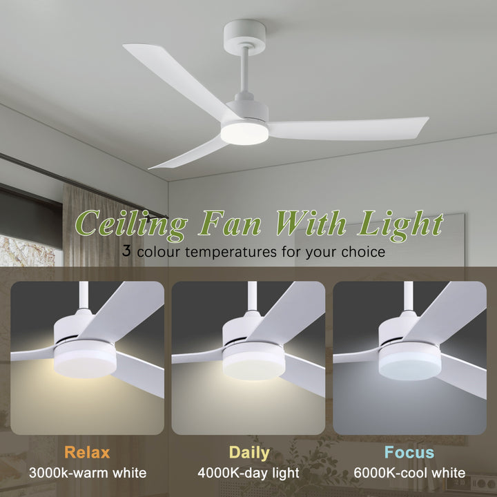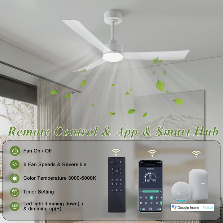 52 Inch LED Morden White Ceiling Fan with Remote/App/Voice Control Quite DC 6 Speeds Motor