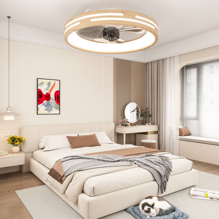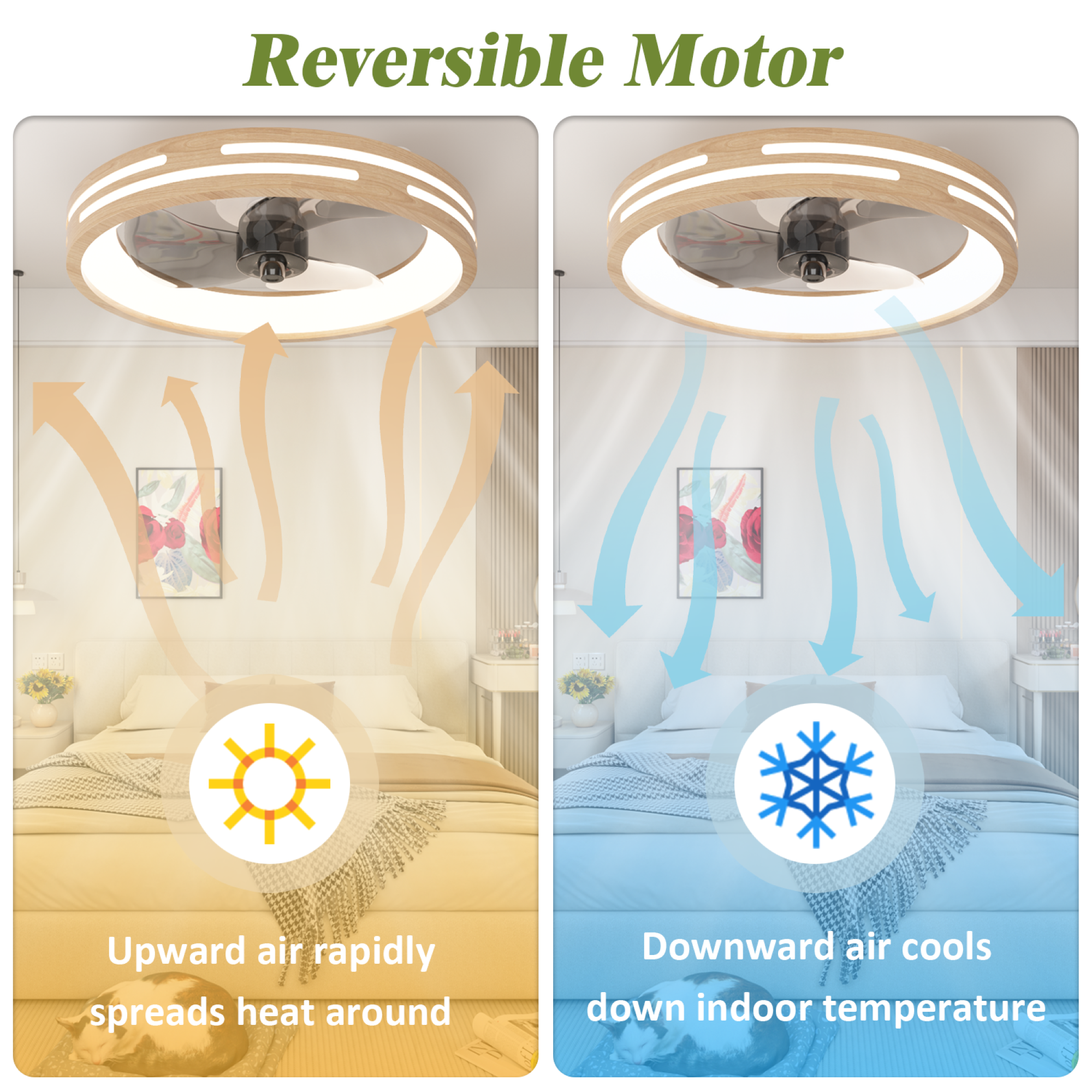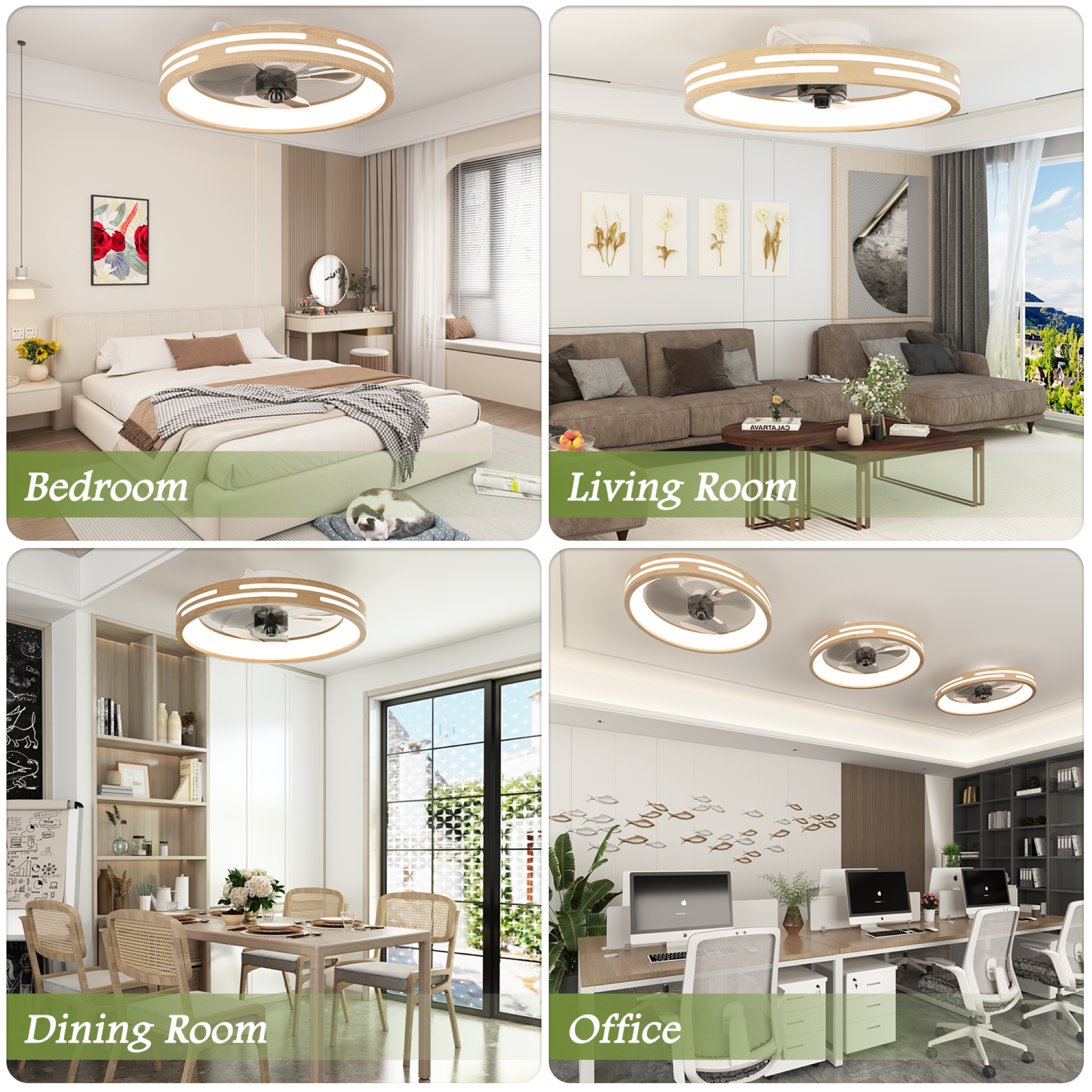Ceiling Fans with Lights and Remote, 20'' Low Profile Ceiling Fan with App & Voice Control, Fandelier Ceiling Fan with Light for Bedroom, Living Room (White+Wood Grain)