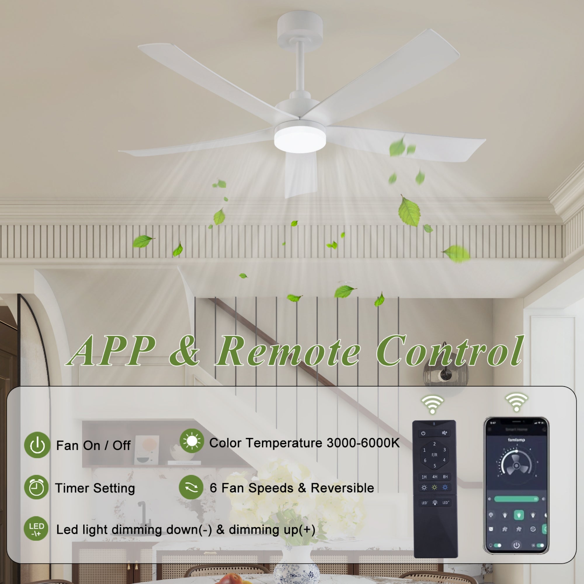 52" Ceiling Fans with Lights,Low Profile Indoor Ceiling Fan with Light and Remote/Tuya APP Control/Alexa/Google,LED Dimmable Ultra Quiet DC Reversible Led Ceiling Fan for Bedroom Living