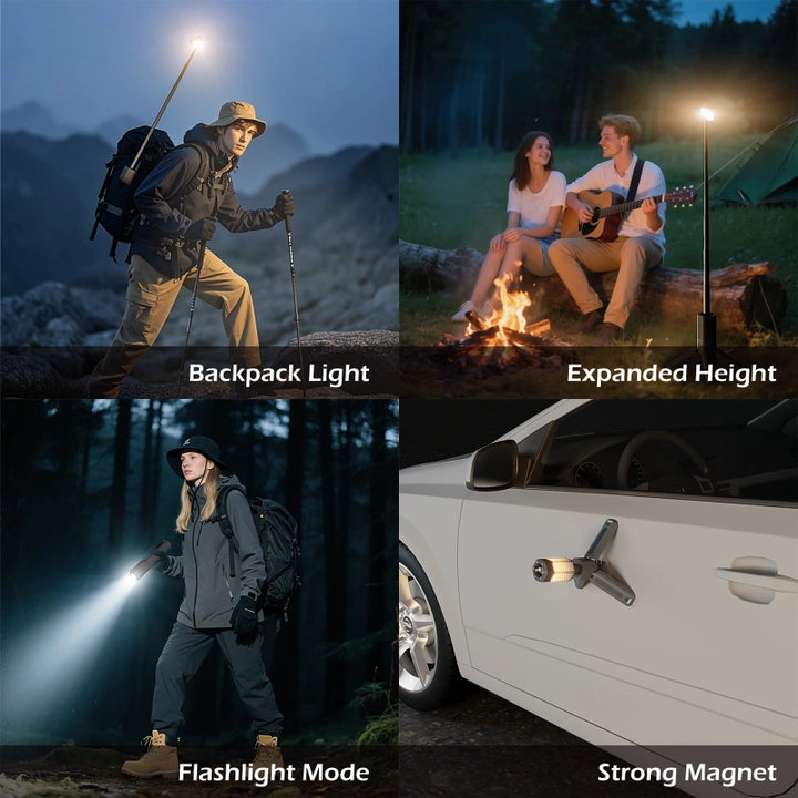 This versatile camping light features a collapsible design and includes a storage box for easy transport and storage. Extend or retract it to your preferred height up to 26in (66cm), and use the strong magnetic base to attach it securely to any iron surface—perfect for hands-free lighting during outdoor adventures