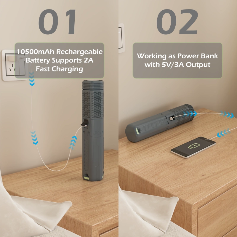 MASSIVE 10,500MAH RECHARGEABLE BATTERY - Powered by a high-capacity 10,500mAh battery, this camping lantern delivers long-lasting light and even doubles as a power bank to charge your phone, tablet, or headphones. Never worry about running out of power on the go
